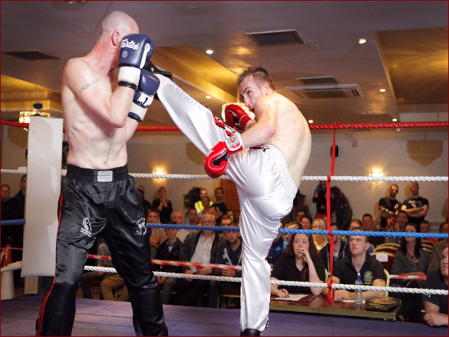 This contest was an explosive encounter from the opening bell. De Grace was the more experienced but Quin was the new sensation who had quickly stepped up to European level with some excellent wins, including a recent victory over world rated Roma Da Silva. Both men came out looking for elbow strikes early but it was De Grace who struck first, opening up an early cut on Quins forehead. The trade offs were fantastic with the whole variety of low kicks, knee strikes and punch combinations being used evenly.